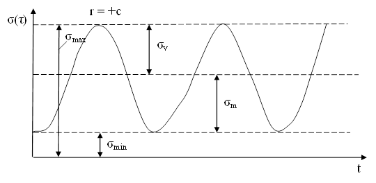 Переменные напряжения, прежде всего, характеризуются циклом изменения напряжений (отнулевым, знакопеременным симметричным и ассиметричным знакопостоянным или знакопеременным циклами).