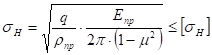 Расчет сводится к удовлетворению условия, чтобы рабочие контактные напряжения не превышали допускаемые. Расчет ведут для зацепления в полюсе, т.к. выкрашивание начинается у полюсной линии в зоне однопарного зацепления. В качестве исходной принимают формулу Герца для определения σН (касательных напряжений) при сжатии цилиндров, соприкасающихся вдоль образующих.