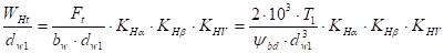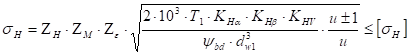 (4) – основная формула для расчетов цилиндрических прямозубых колес на контактную прочность.