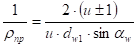Определим ρпр – приведенный радиус кривизны профилей зубьев в зоне контакта. Он находится из зависимости: