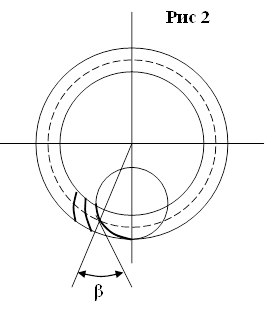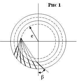 Тангенциальные зубья (рис 1) направлены по касательной к некоторой воображаемой окружности r = e и составляют с образующей конуса угол β. Станки для нарезания этих колес имеют малое распространение, и производительность их низка по сравнению со станками для получения колес с криволинейными зубьями. Поэтому область применения этих колес ограничена. Чаще применяют колеса с круговыми зубьями (рис 2). Они допускают работу при более высоких скоростях и менее чувствительны к нарушению точности взаимного положения валов. Их изготовление проще и производится на специальных станках для нарезания и шлифования этих колес в условиях как массового, так и мелкосерийного производства.