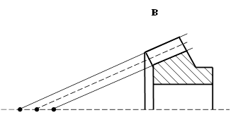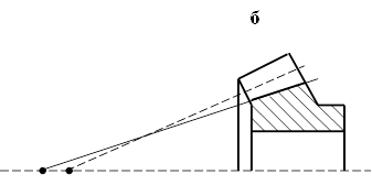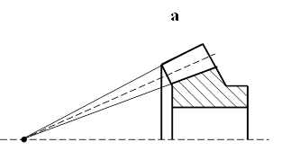 2) Форма 2 (рис б). Вершина внутреннего конуса располагается так, что ширина дна впадины постоянна, толщина зуба по начальному контуру растет пропорционально расстоянию от вершины зуба, а вершина конуса впадин не совпадает с вершиной начального конуса. Эта форма используется для круговых зубьев при