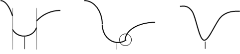 Модель может иметь разрывы первого рода (см. рис. 1.5. а). Непрерывная унимодальная модель может иметь точки разрыва производной – разрывы второго рода (см. рис. 1.5. б). На рис. 1.5 в показана непрерывно-дифференцируемая унимодальная модель.