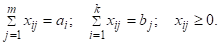 (j = 1,…, m) некоторого продукта. Количество продукта, произведенного в каждом из k пунктов производства, равно ai; количество продукта, необходимого в каждом из m пунктов потребления, равно bj.