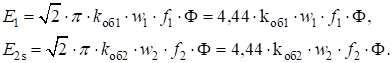 – обмоточный коэффициент и число витков фазной обмотки ротора, Ф – основной поток;