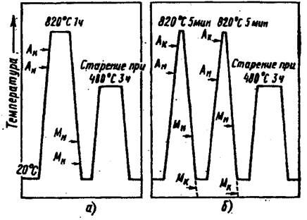 Совершенствование термической обработки ведется в направлении использования ступенчатой и многократной закалок, а также двойного старения (например, по режиму 560 °С, 1 ч + 400 °С, 2 ч), цель которого добиться наиболее полного проявления упрочняющего эффекта старения. В области применения термомеханической обработки перспективным представляется сочетание деформации стали в аустенитной области при температуре несколько выше точки Мн с целью получения мартенсита деформации и последующего старения. При этом механические свойства весьма высоки, поскольку мартенсит, образующийся в деформированном аустените, обладает повышенной дефектностью кристаллической решетки.