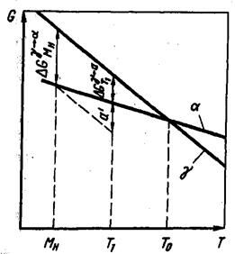 Мартенситное превращение может начаться при температуре Т1 (Мн < Т1 < Т0), если внешняя нагрузка облегчает образование критического зародыша, т.е. если она снижает на некоторую величину требуемую движущую силу