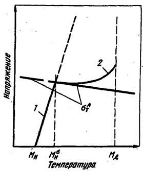 1 – мартенсит напряжения; 2 – мартенсит деформации;