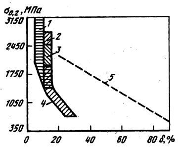 3 – мартенситностареющие стали; 4 – высокопрочные низколегированные