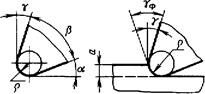 Главная режущая кромка выполняет основную работу резания и теоретически должна быть острой. Практически же всегда имеется некоторый радиус, называемый радиусом округления режущей кромки r (рис. 3.3). При работе с малой толщиной среза а радиус округления существенно влияет на процесс резания, так как изменяет передний угол.
