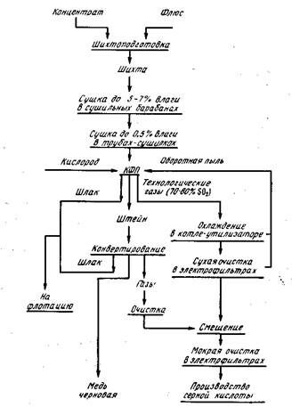 2. Высокое содержание SO2 в отходящих газах, что позволяет эффективно утилизировать для производства серной кислоты или элементной серы. Это позволяет характеризовать автогенные процессы как экологически чистую технологию, в сравнении с другими процессами, где газы выбрасывают в атмосферу.