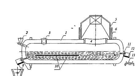/ — цилиндрическая поворотная печь, 2 — пневматическое загрузочное устройство, 3 — загрузочная горловина, 4 — газовая горловина, 5 — стационарная часть напыльника, 6 — поворотная часть на пыльника, 7 — ковш для приема штейна, 8 — стационарный штейновый желоб, 9 — летка для выпу ска обогащенного штейна, 10 — фурмы для подачи воздуха, обогащенного кислородом, 11 — летка для выпуска шлака, 12 — стационарный шлаковый желоб, 13 — конвейерная шлакоразливочная машина