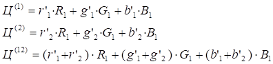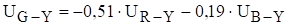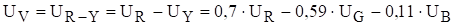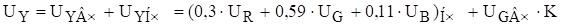 Сумма коэффициентов при UR, UB и UG равна 1 ( в соответствии с 4.2).