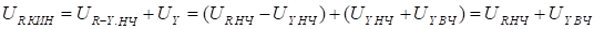 В первых скобках записано выражение для цветоразностного сигнала; индексы НЧ означают, что это низкочастотные составляющие, полоса которых 0-1,5 МГц; во вторых скобках – сигнал яркости, представленный в виде суммы НЧ и ВЧ составляющих (0-1,5 МГц и 1,5-6 МГц). Аналогично записываются выражения для сигналов UG.КИН и UВ.КИН. Как уже говорилось ранее (см. рисунок 4.6) сигналы основных цветов (4.10) являются цвето- и гамма-корректированными.