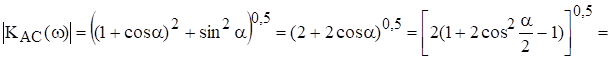 Устройство содержит линию задержки ЛЗ на строку (Δt=Tстр) и схемы сложения (+) и вычитания (–). Характерные точки гребенчатого фильтра (ГФ) обозначены буквами A, B, C, D. Для примера определим коэффициент передачи ГФ от точки А к точке С в комплексной форме (уравнение 5.5,а) и по модулю (уравнение 5.5,б).