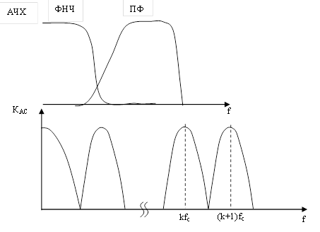 б) амплитудно-частотные характеристики ПФ и ФНЧ