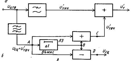 Рисунок 5.3 – а) Структурная схема гребенчатого фильтра для разделения СЯ и СЦ