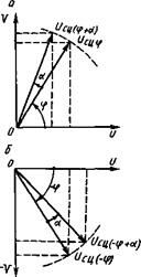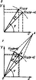 Uсц(-φ+α), так как величина и направление фазовой ошибки не изменились. Эти сигналы сдвинуты по фазе на угол α относительно неискаженных сигналов Uсцφ и Uсц(-φ) (сдвиг в сторону опережения, т.е. против часовой стрелки). В приемнике в (n+1)-й строке фаза поднесущей частоты в канале V восстанавливается, тогда вектор Uсц(-φ+α) приобретает зеркальное отражение относительно оси U , т.е. Uсц(φ-α) (рисунок 5.6,в). На рисунке 5.6,г векторы СЦ двух соседних строк совмещены. Для наглядности на всех векторных диаграммах показано положение вектора Uсцφ при отсутствии фазовых искажений в тракте. Для выделения сигнала V необходимо сигнал Uсц(φ+α) в n-й строке и восстановленный Uсц(φ-α) в (n+1)-й подавать на СД и детектировать по оси V, подавая на него также поднесущую от местного генератора с фазой 90º. Практически (см. рисунок 5.6) в n-й строке так и происходит, а в (n+1)-й детектируется не сигнал Uсц(φ-α), а принимаемый сигнал Uсц(-φ+α), но по оси –V, когда на СД поступает поднесущая частота с фазой 270º=(90º+180º).