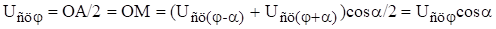 На рисунке 5.6, г показана сумма векторов СЦ двух соседних строк – вектор ОА, который имеет тот же фазовый угол, что и исходный вектор Uсцφ=ON (т. е. цветовой тон не искажается), но амплитуда вектора увеличивается. Перед подачей на СД его амплитуда уменьшается в 2 раза и представляется вектором, равным половине диагонали параллелограмма: