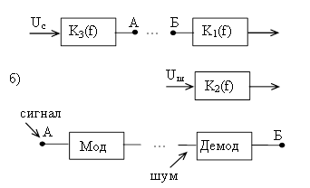 б) Структурная схема прохождения сигнала и шума для НЧ части
