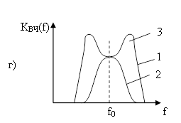 г) Варианты АЧХ ВЧ блоков передачи (3) и приема (2)