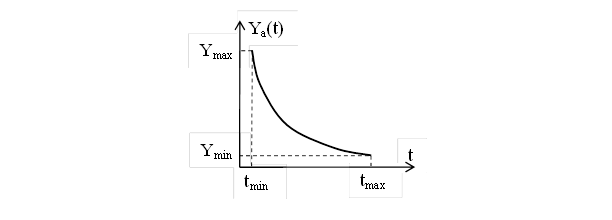 Аналоговый сигнал описывает физический процесс, порождающий сигнал, развивающийся во времени таким образом, что значения сигнала можно измерять в любые моменты времени. Он описывается непрерывной или кусочно-непрерывной функцией Ya(t) (рисунок 2.1), причем как сама эта функция, так и ее аргументы могут принимать любые значения на заданные интервалах Y Î {Ymin; Ymax} и t Î {tmin; tmax}. Аналоговый сигнал представляется графиком (осциллограммой).