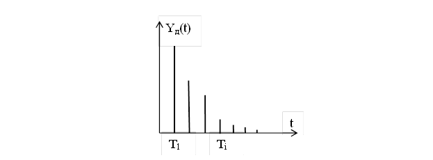 Дискретный сигнал – это сигнал, изменяющийся дискретно во времени или по уровню. Простейшая модель дискретного сигнала – это счетное множество точек {ti} (i = 1, 2, 3, …) на оси времени, в каждой из которых определено отсчетное значение сигнала Yдi(t) (рисунок 2.2).