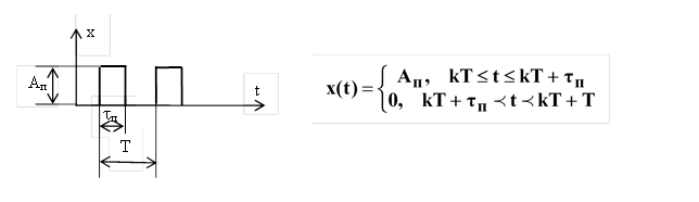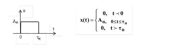 Импульсный сигнал – детерминированный сигнал конечной энергии, существенно отличный от нуля в течение ограниченного интервала времени, соизмеримого со временем завершения переходного процесса в системе, для воздействия на которую этот сигнал предназначен. Импульсные сигналы – это колебания, существующие лишь в пределах конечного отрезка времени.