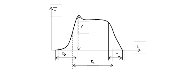 Параметрами импульса являются амплитуда (А), длительность фронта (tф), длительность импульса (tи) и длительность среза (tс) (рисунок 2.4).