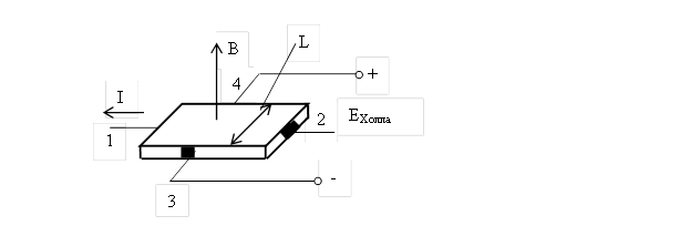 Действие измерительных преобразователей Холла основано на эффекте возникновения поперечной разности потенциалов (так называемой ЭДС Холла) на боковых гранях полупроводниковой пластины при помещении ее в поперечное магнитное поле и пропускании через нее электрического тока в продольном направлении (Рисунок 2.14).