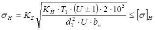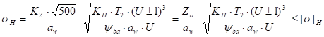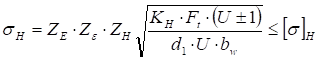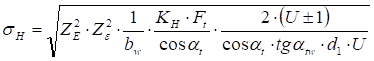 Зависимость для расчёта контактных напряжений прямозубых передач:
