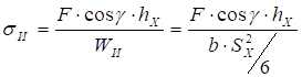 Зуб в опасном сечении испытывает сжатие от Fрад и изгиб от Fокр ;