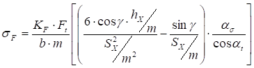 Формула для проверочного расчёта зубчатых передач по напряжению изгиба: