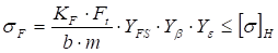 Допускаемые напряжения изгиба вычисляются отдельно для шестерни и колеса по зависимостям, аналогичным допускаемым контактным напряжениям.