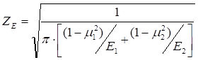Для стали   E1 = E2 =2.1*105 МПа, μ1 = μ2 = 0,3  и ZE = 191.6 МПа0,5