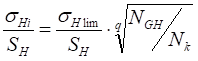 Запишем выражение для контактных напряжений [σ]H при назначенном ресурсе Nk:
