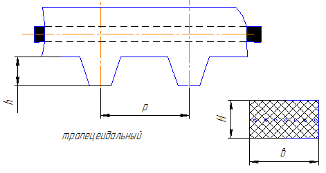 Основные размеры: расчетная ширина  и расчетная длина  по нейтральному слою, расположенному  на расстоянии   от большего основания трапеции. В зависимости от отношения  стандартные клиновые ремни изготавливают  нормального , узкого    и широкого   сечений.