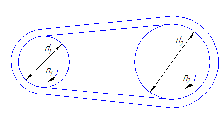 Это передача трением с гибкой связью. Она состоит из ведущего  и ведомого  шкивов  и ремня, надетого на шкивы с предварительным натяжением.
