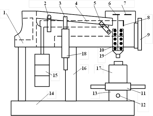 4. Система рычагов 12, 15, 17-19, передающих нагрузку на испытуемый образец.