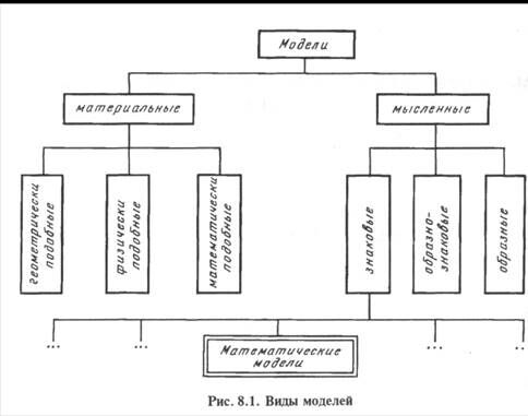 Виды моделей. Все модели могут быть разделены на несколько видов (рис. 8.1). Прежде всего различают модели материальные и мысленные.