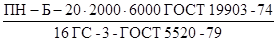 Стандартом регламентирована также маркировка листов. Например, лист из стали марки 16ГС, нормальной плоскостности, нормальной точности прокатки, размером 20×2000×6000 мм, категории 3 обозначается следующим образом: