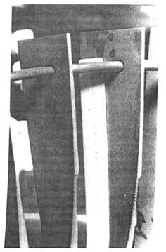 Рис. 1.29. Эрозия входных кромок рабочих лопаток ниже стеллитовых пластинок