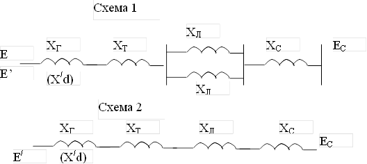 Для исследования статической устойчивости ЭС составляем схемы замещения:
