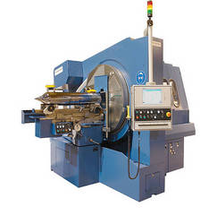 В современных установках шпиндель с диском с внутренней режущей кромкой вращается в вертикальной плоскости, слиток подается горизонтально (рис. 8).