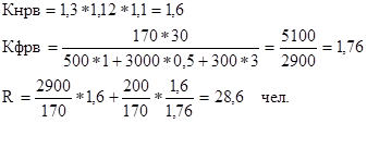 Расчет необходимой численности показал некоторый излешек (» 1 человек) фактического количества сотрудников (30 –28,6 » 1 человек)