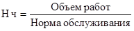Количество рабочих повременщиков или служащих по нормам обслуживания рассчитываются по следующей формуле: