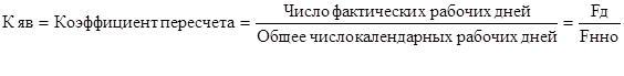 Применяемый в расчетах по всем методам определения численности коэффициент пересчета явочной численности в списочную позволяет учесть вероятное отсутствие персонала на рабочих местах в течение планового промежутка времени из-за: болезни, очередного или дополнительного отпуска, отпуска по учебе, прочих уважительных причин.