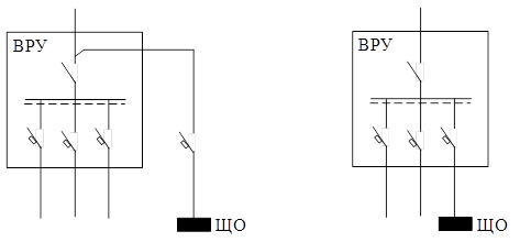На рис. 9.1 приведены схемы питания электрического освещения от вводно-распределительного устройства (ВРУ) совместно с силовыми электроприемниками.