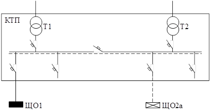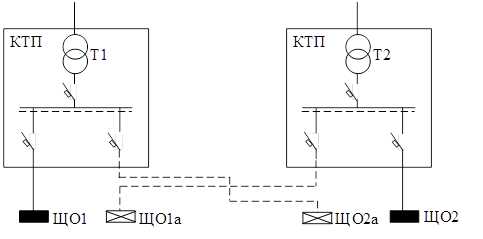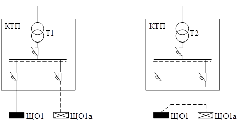 Рис. 9.4. Схема питания ОУ от двухтрансформаторной подстанции