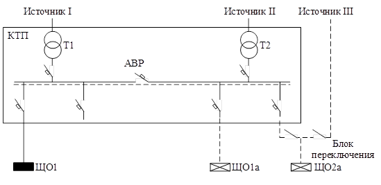 Эта схема используется и в качестве третьих независимых источников при питании электроустановок «особой» категории электроснабжения.